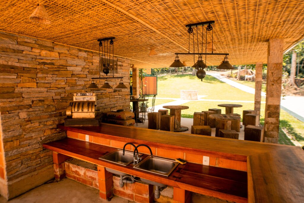 Na parte mais alta da Quinta, no meio da floresta, surge essa majestosa construção. Com a arquitetura e paisagismo meticulosamente integrados à exuberante Mata Atlântica, este espaço é uma expressão de beleza e funcionalidade que transmite autenticidade em cada detalhe.