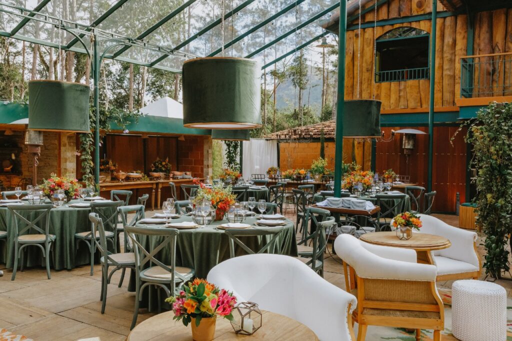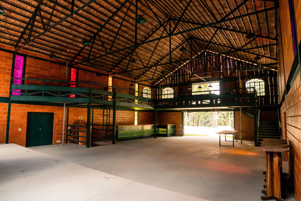 A sua estrutura metálica de estilo inglês é proveniente do desmonte de uma fábrica têxtil, combinada com os eucaliptos presentes em sua fachada, e traz uma atmosfera única, digna das mais exclusivas celebrações.